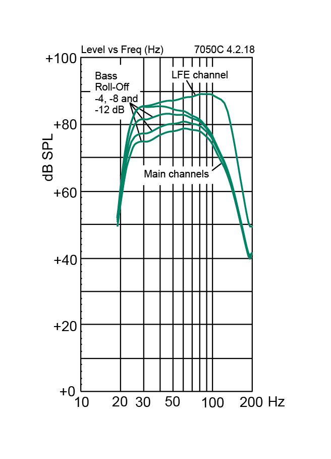 With five input and output channels with 85 Hz filtering - plus a 120 Hz LFE input - the 7050C is equally suited to stereo or multichannel work, and its laminar spiral enclosure provides extended LF response down to 24 Hz with impressively low distortion. Rear panel DIP switches control subwoofer phase and LF roll-off, engage the +10 dB LFE level, and also activate and control the sensitivity of the 7050C’s ISS power-saving mode.